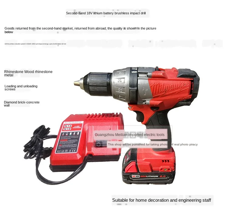 Product Name: Second-hand Original Factory Imported Electric Tools American Mivoqi 18V Brushless Lithium Impact Drill Charging Drill 24 Gear