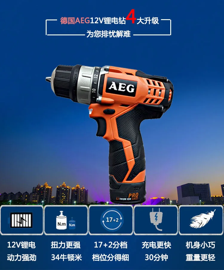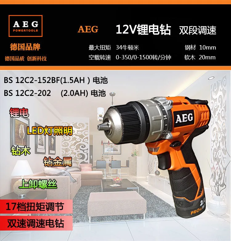 Product Name: The Official Licensed German AEG Lithium Electric Drill, 12V Industrial Class Single Speed Charge Drill Hand Drill BS12C2 (stand