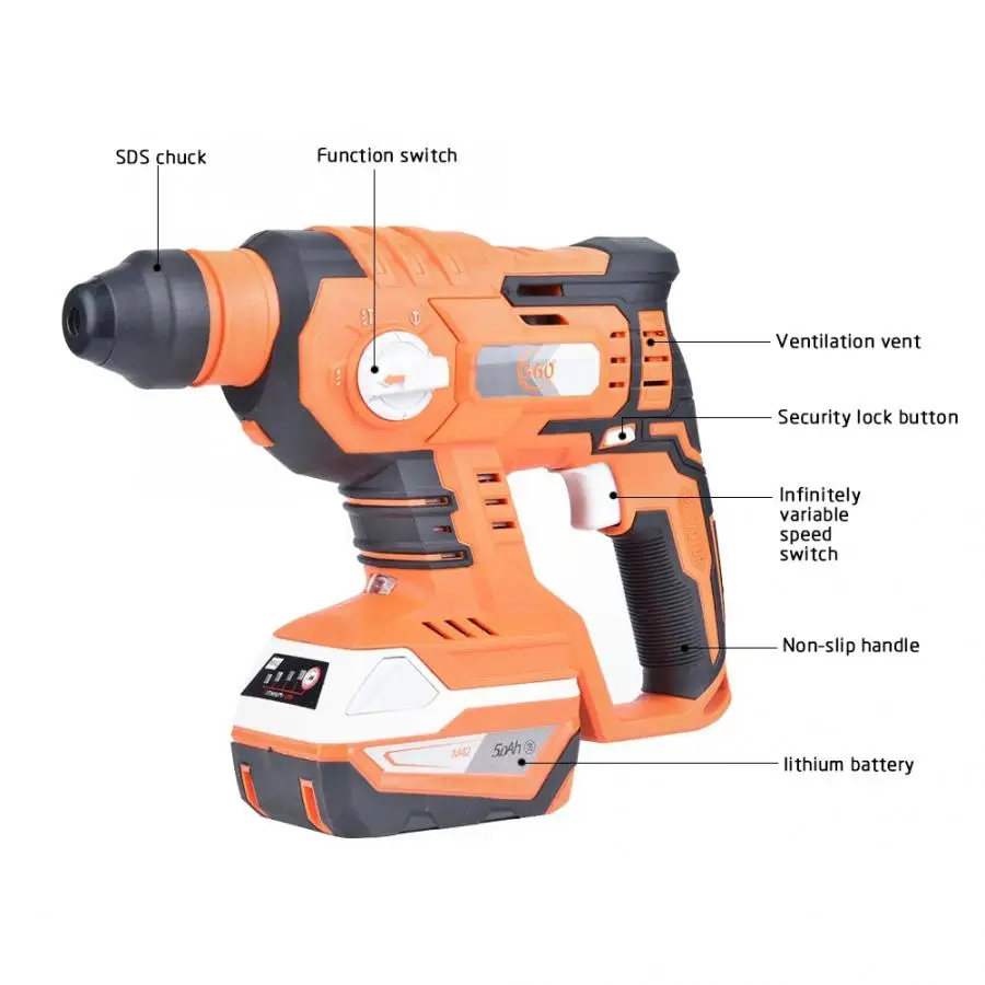 Product Name: Hammer Drill Industrial 4 In 1 Battery Brushless Cordless Electric Breaker Hammer Concrete Tools